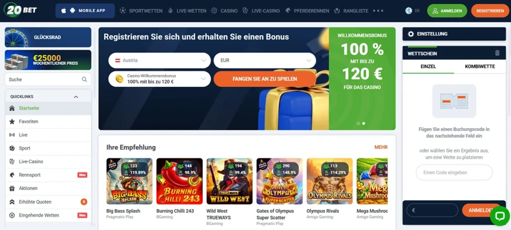 20Bet ist ein Allrounder. Es kombiniert ein erstklassiges paysafe casino mit einer umfangreichen Plattform für Sportwetten. Das ist besonders für Spieler in Österreich interessant, die gerne zwischendurch eine Wette auf die Bundesliga oder die Champions League platzieren.