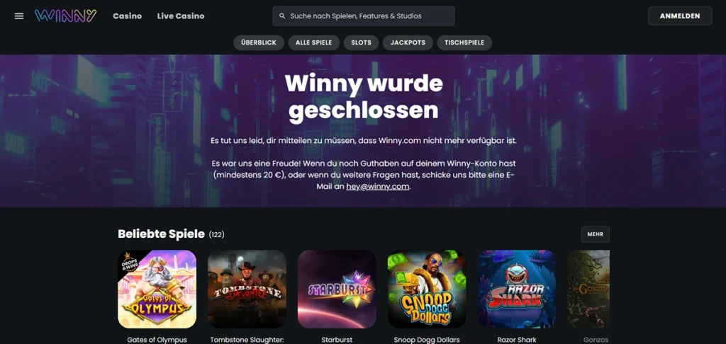 | Winny Casino | 10% Wöchentlicher Cashback | 4.9/5 | 10 € |
