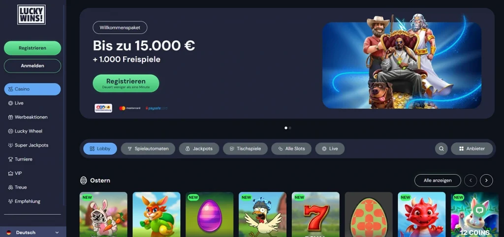 Lucky Wins hat sich als Spitzenreiter im Bereich der Paysafecard Casinos ohne OASIS etabliert. Das Casino überzeugt durch eine Benutzeroberfläche, die sowohl auf dem Desktop als auch auf dem Smartphone flüssig läuft. Da dieses Casino ohne OASIS Sperre agiert, können Sie hier weit über die deutschen Einsatzlimits hinaus spielen.