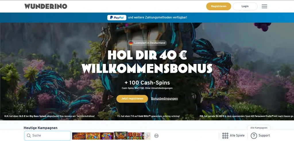 Wunderino ist in Deutschland fast schon ein Synonym für den 400% Casino Bonus. Das Casino war einer der ersten Anbieter, der das Modell „Zahle 10 Euro ein und spiele mit 50 Euro“ massentauglich gemacht hat. Mit einer offiziellen Lizenz der Gemeinsamen Glücksspielbehörde der Länder (GGL) bietet Wunderino eine sichere Umgebung für Ihre Einzahlungen. Besonders die Kombination aus Paysafecard und dem hohen Bonusfaktor macht diesen Anbieter zur ersten Wahl für Gelegenheitsspieler.